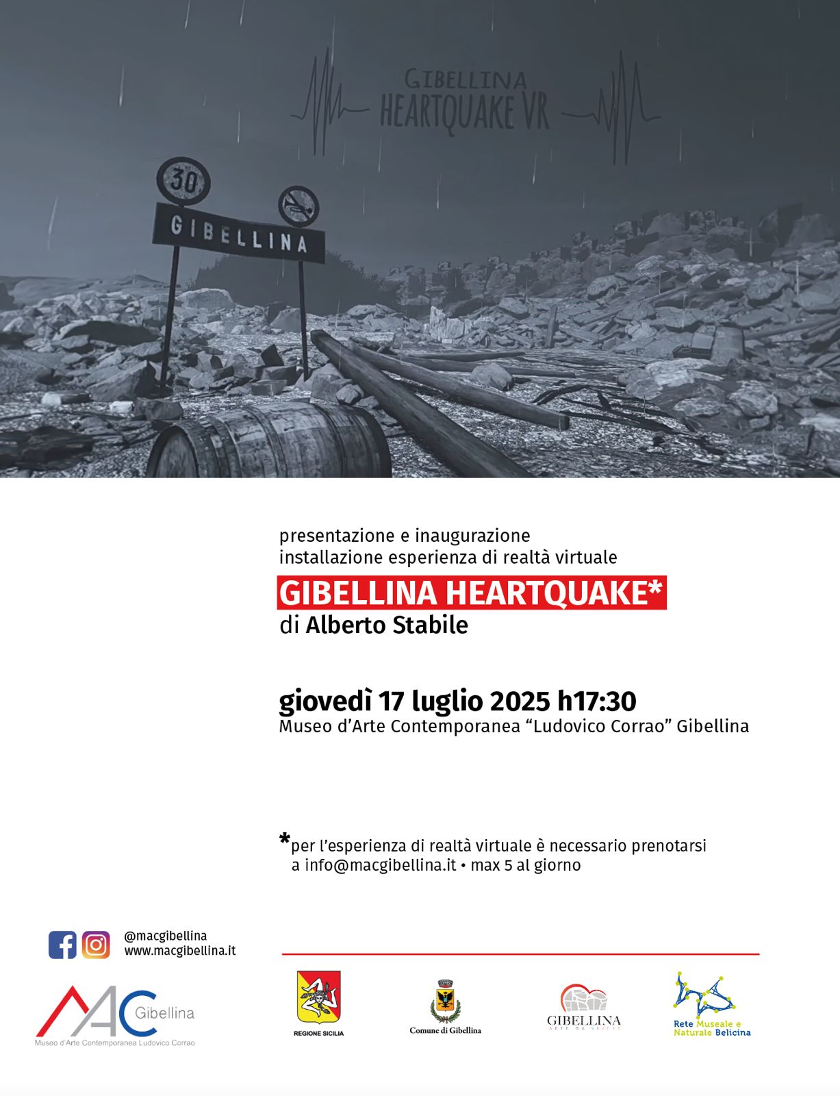 Il 17 luglio alle ore 17.30 verrà presentata l’installazione in realtà aumentata “Gibellina Heartquake” di Alberto Stabile, all’interno del Museo D’arte Contemporanea “Ludovico Corrao” a Gibellina.